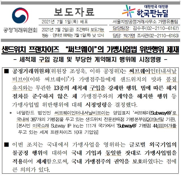 본사가 가맹점의 사전 승인 없이 이 항목을 일방적으로 추진하고 이에 따른 비용을 가맹점에게 부담시키는 것은 부당하다고 판단됐다. 원고 일부는 염씨와 함께 손해배상을 청구한 여러 계열사에 대해 손해배상을 하라는 판결이 내려졌다고 한다. 이처럼 매장 판매나 인근 시장에 대한 정보를 제대로 제공하지 않아 가맹점주가 피해를 입거나, 불공정한 내용으로 이른바 본사의 직권남용으로 피해가 발생한 경우 치열한 법적 분쟁이 발생해 이를 판단하게 된다. 이에 대한 책임은 누구에게 있습니까? 때때로 당신은 잃습니다. 본사 입장에서는 부정경쟁방지법 위반을 이유로 계약 해지를 추구하는 것도 가능하다. 다만, 이 경우 최소 60일 이상의 유예기간을 두어야 하며, 가맹점주에게 위반사실을 통보하고 시정을 요구해야 합니다. 시정 조치가 취해지지 않을 경우, 계약이 종료될 수 있다는 서면 통지가 2회 이상 전달된 후 계약이 종료될 수 있습니다. 가맹점과 본점의 법적 다툼에서는 재정력이 월등히 높아 로펌의 도움을 받는 본점이 본점에 유리한 판결을 받는 일화가 많아 현실은 그렇지 않다. 가맹점주는 가맹사업법에 따라 소송을 진행하기 쉽습니다.