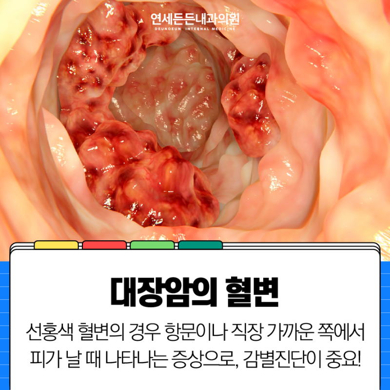 단순히 출혈이 있을 수도 있지만 경우에 따라서는 설사, 복통, 속 쓰림, 구토 등의 다른 증상이 동반될 수도 있습니다. 그러므로 정확한 검진을 통해 원인을 찾아 치료하는 것이 좋습니다.