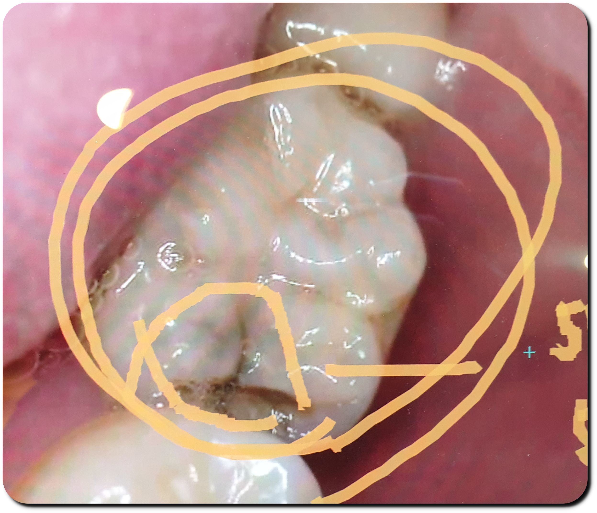 충치 부위를 파헤쳐 보면 상당히 큰 충치를 볼 수 있습니다.